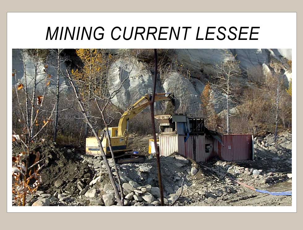 There are currently two placer mining operations located within the Decker Gold Project. The camp and the equipment in the first 3 slides are for sale, the Lessee shown in the last slide is the first Lessee with the Decker Gold Project