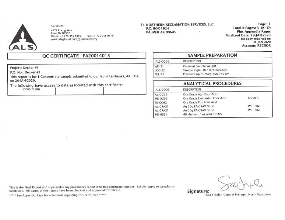 These are assay results taken from “final wash concentrate” (ie; after most of the gold has been removed) indicating the high mineralization of the area.